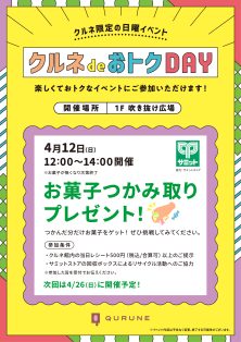 クルネdeおトクDAY お菓子つかみ取りプレゼント!