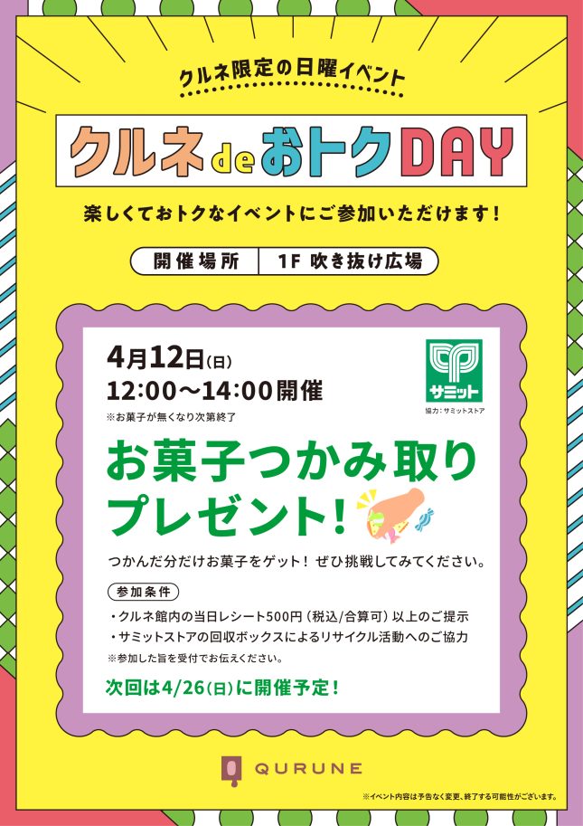 クルネdeおトクDAY お菓子つかみ取りプレゼント!
