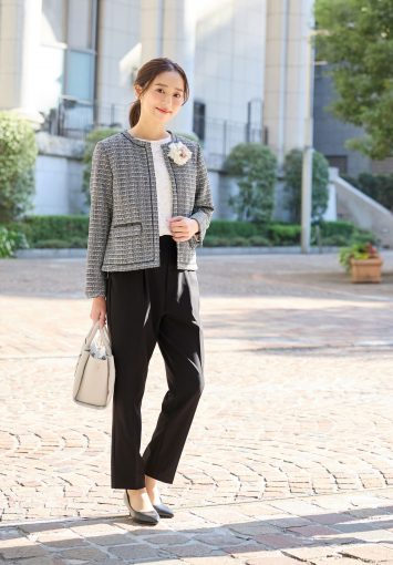 リボン使いノーカラージャケット 4,980円(税込) 華やかなツイード生地とパイピングのデザインで、通勤から入学・卒業式などのセレモニーシーンまで着回し力抜群のアイテム。 S~3Lまで揃った豊富なサイズ展開で、自分にあったサイズが見つかります!